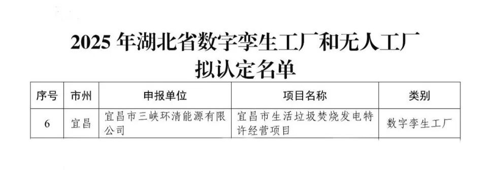 近日,湖北省經濟和信息化廳正式公布了2025年湖北省數字孿生工廠和無人工廠認定名單,宜昌垃圾發電項目脫穎而出,被認定為“湖北省數字孿生工廠”,這一榮譽不僅是對項目自身數字化建設的肯定,更是公司踐行“雙碳”目標、助力湖北省制造業高端化、智能化、綠色化發展的又一重要成果。