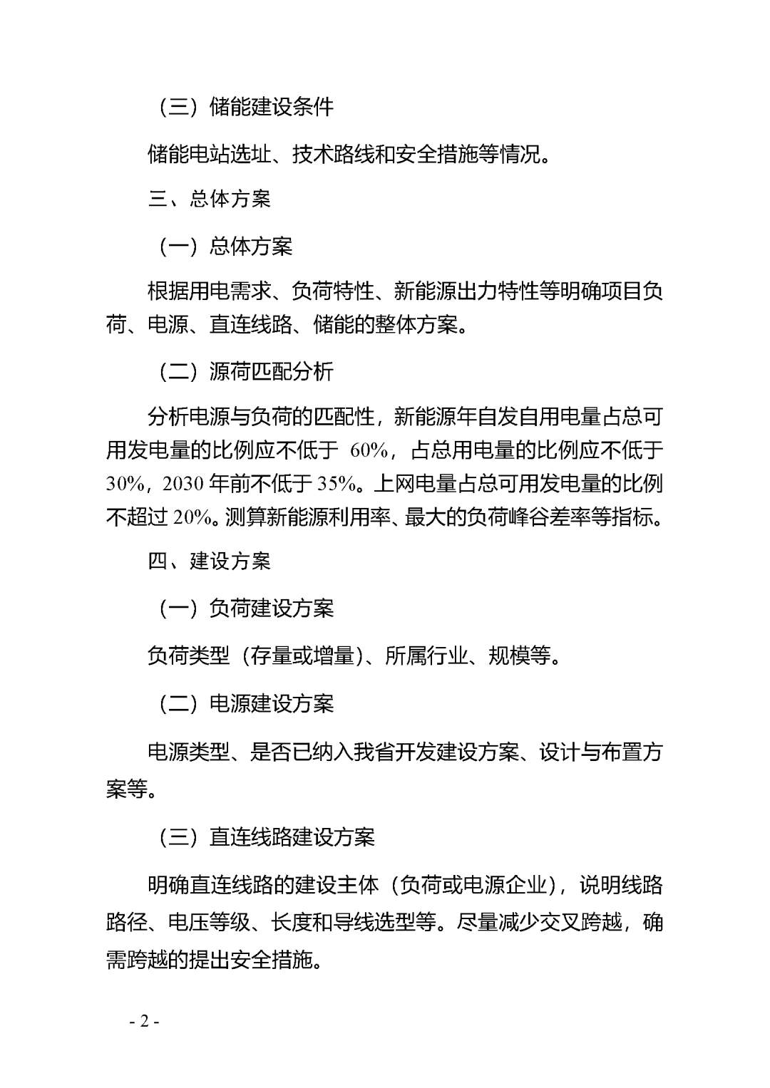 并網型項目應按照“以荷定源”原則科學確定新能源電源類型、裝機規模和儲能規模,自發自用為主,余電上網為輔。項目電源年自發自用電量占總可用發電量的比例應不低于60%,占總用電量的比例應不低于30%,并不斷提高自發自用比例,2030年前不低于35%。上網電量占總可用發電量的比例應不高于20%。