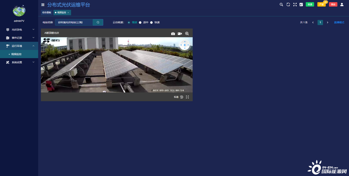●視頻監控:通過安裝在現場的視頻攝像頭,可以實時監視光伏站運行情況。對于有硬件條件的攝像頭,還支持錄像回放以及云臺控制功能。