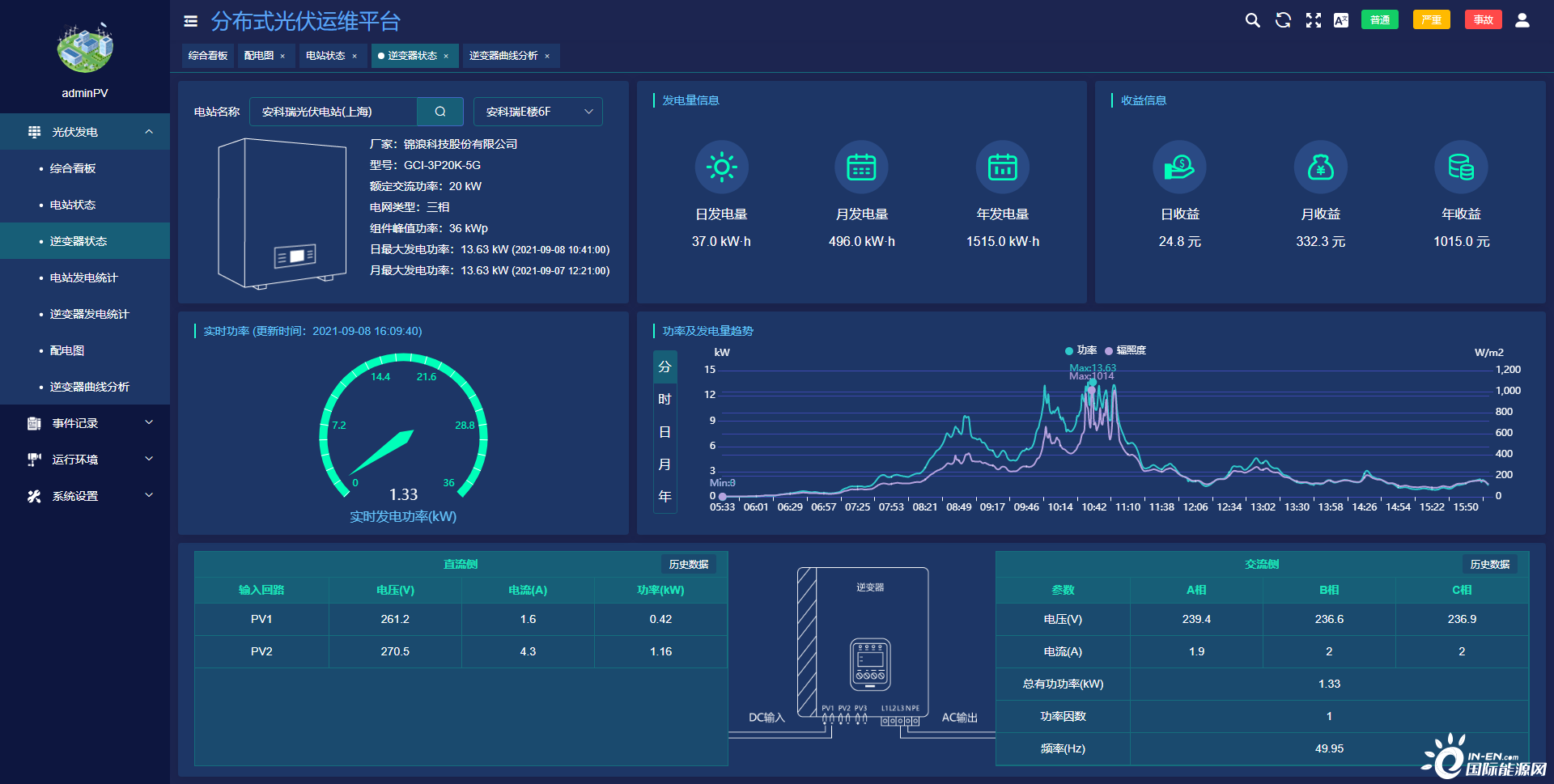 ●實時展示逆變器交、直流側的數據。